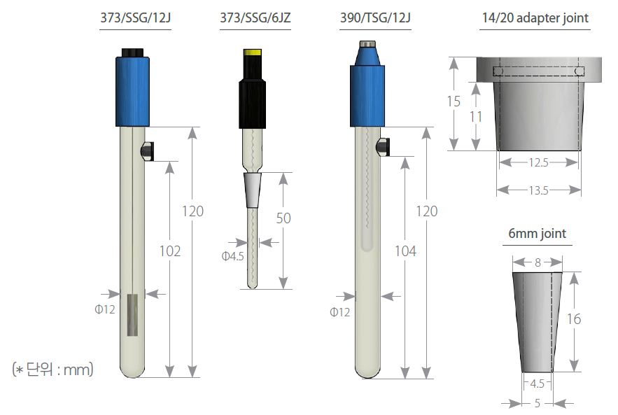 ※ Double Junction Reference Electrode의 glass tube를 교체하는 경우, Φ6 및 Φ3 Vycor tip glass tube 부품이 모두 필요합니다.
