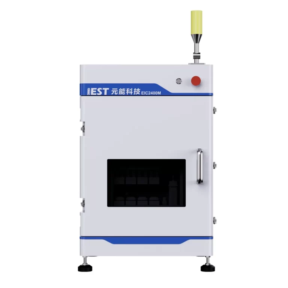 The multi-channel ionic conductivity test system (EIC2400M) developed by IEST was used, as shown in Figure 1. This device includes four test channels, provides a high-purity argon atmosphere, and enables electrochemical impedance spectroscopy (EIS) testing of multi-channel symmetric cells. The pressure range is 10–50 kg, and the frequency range is 100 kHz–0.01 Hz.Figure 1. Multi-channel ionic conductivity test system(EIC2400M)