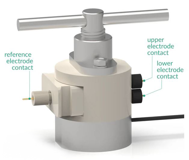 · Micrometer control knob를 통해 전극에 가해지는 압력 조절(최대 80N) 셀에 적용된 초기 압력과 고체 전해질 또는 금속 도금 공정의 성능 간의 상관관계 연구 가능