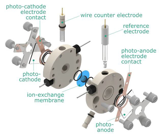 Photo-electrochemical flow H-cell setup