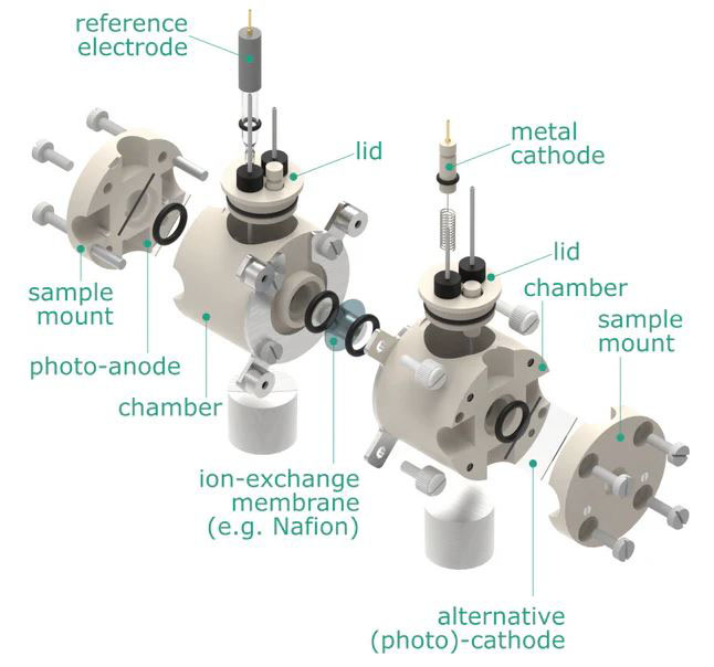 · PTFE 소재로 된 광전기화학 Flow H-cell kit
