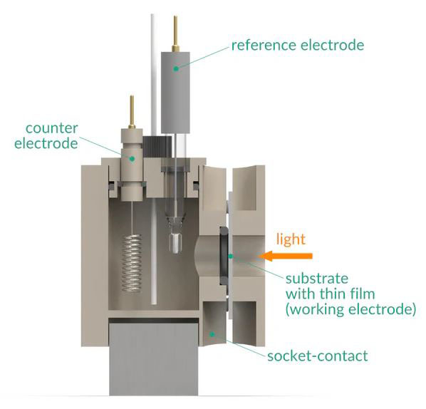 Photo-electrochemical single-sided cell setup