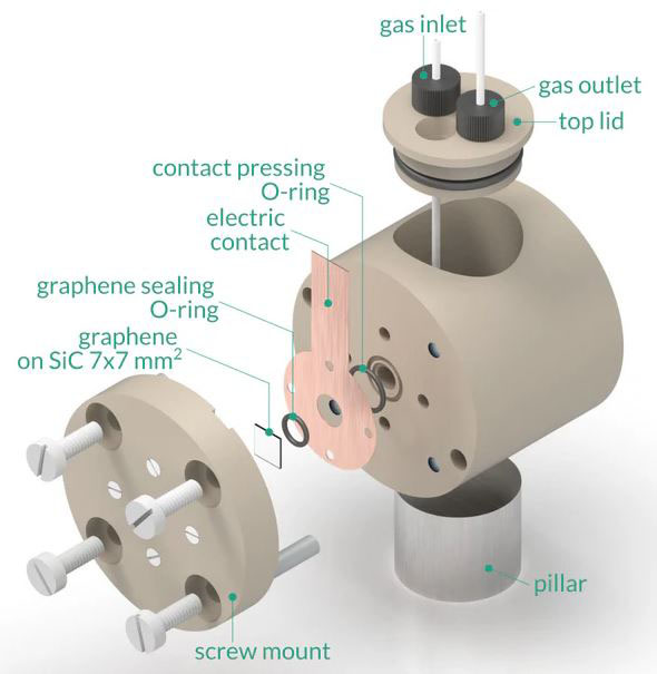 · SiC 기판(15x15mm2 또는 7x7mm2) 위의 단층 그래핀 물질 측정용 광전기화학 Cell kit