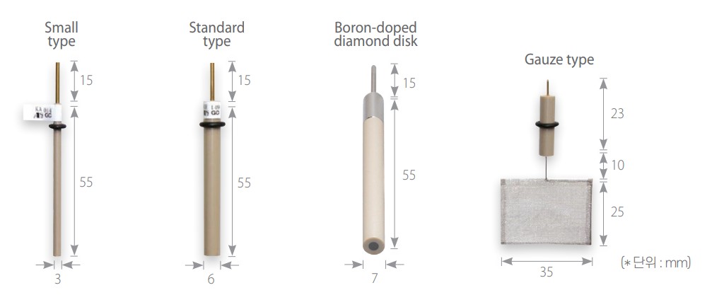 · 전극의 크기 및 재료를 직접 선택할 수 있는