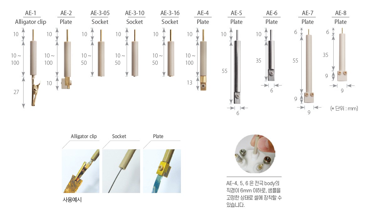 · 전극 면적에 전극 홀더 접촉부가 전해액과 반응하지 않도록 설계(AE-7, AE-8 모델 한정)