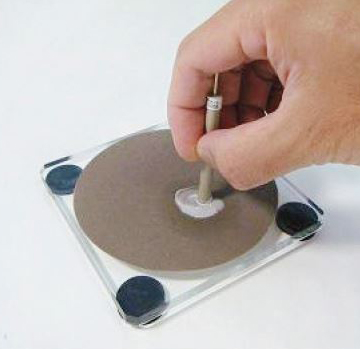 2. Diamond 용액을 pad에 떨어뜨린 뒤, 8자 방향으로 전극을 문질러 주세요(약 10~20분 정도 연속적인 연마가 필요합니다).